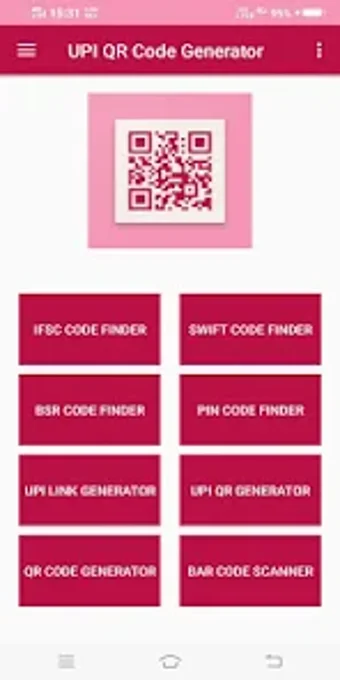 Oltre alla funzione principale di generazione di codici QR, l'app include utilità aggiuntive come il ricercatore di codici IFSC, SWIFT, BSR e PIN. Sono disponibili anche i numeri di assistenza delle banche indiane, permettendo agli utenti di contattare facilmente le banche in caso di problemi con prelievi o trasferimenti di denaro. Inoltre, l'app include un lettore di codici a barre e QR, utile per scansionare codici presenti su giornali o siti web.